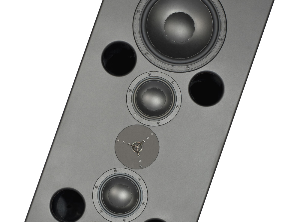 其瘦高的箱体设计是为了保证可以将五只或更多只音箱摆放在监听室的正面或相对较窄的屏幕布后面。